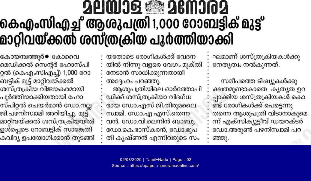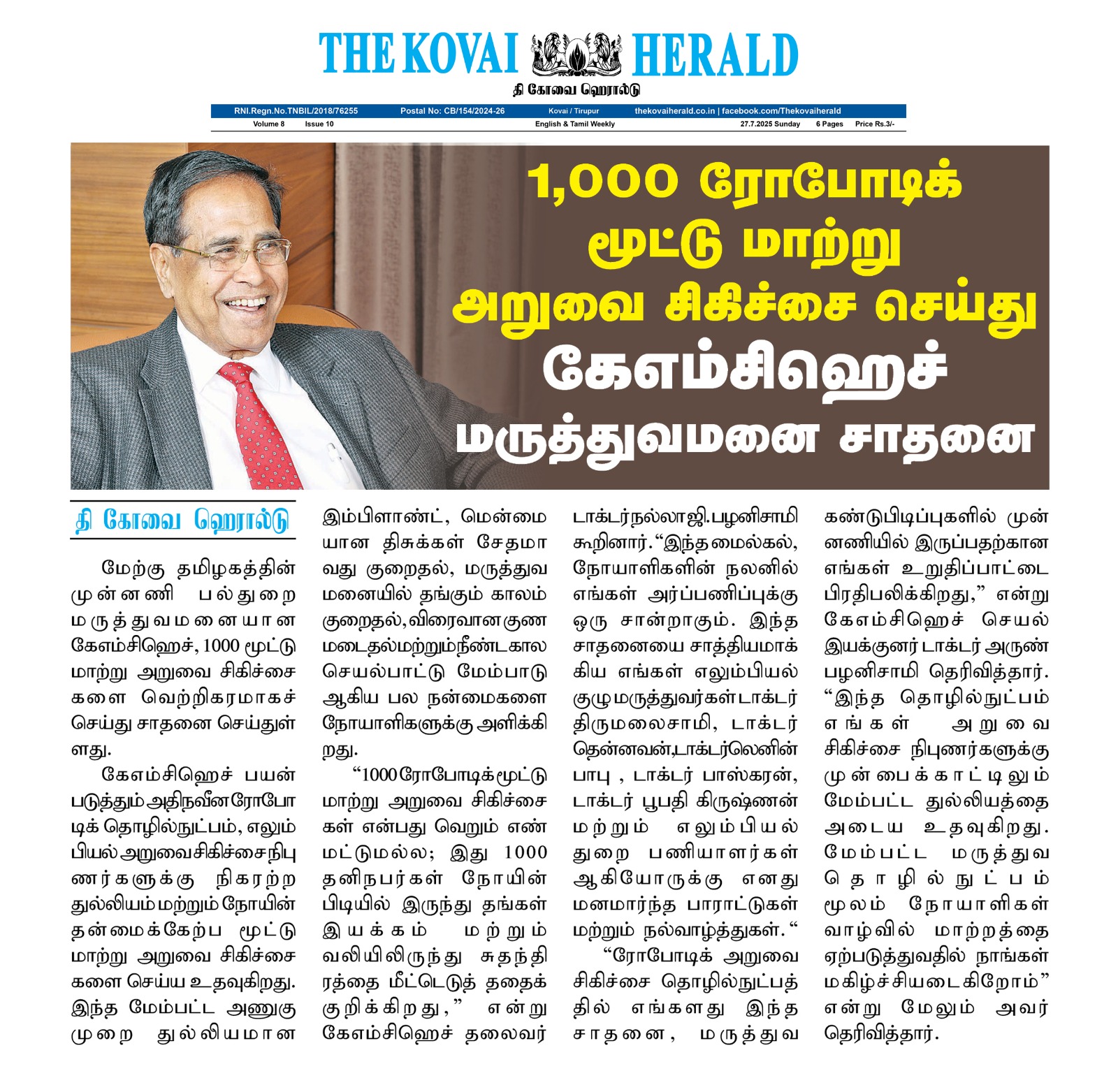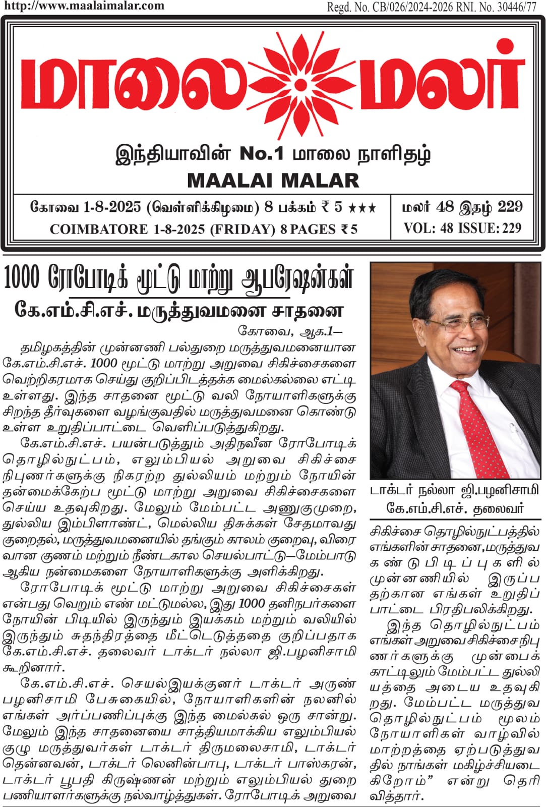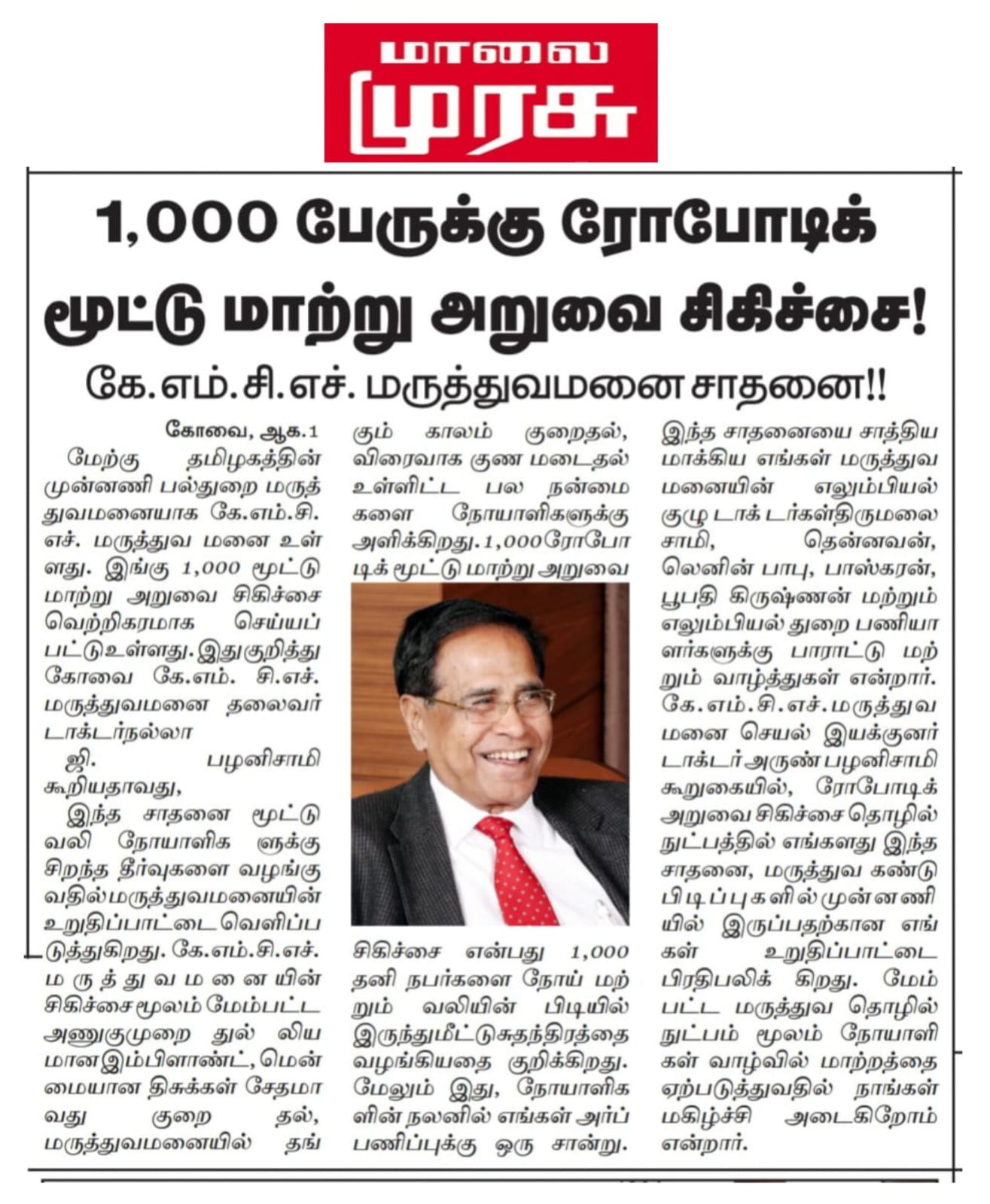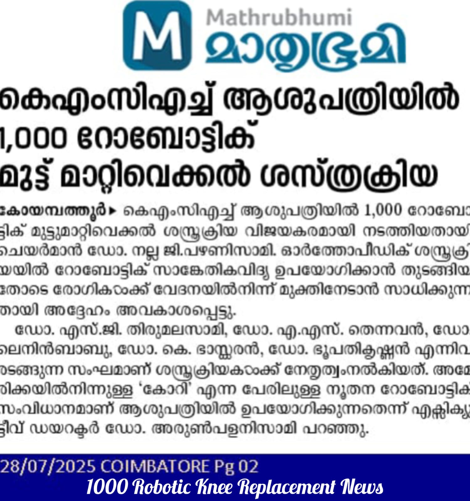 Home » KMCH Achieves Landmark 1000 Robotic Knee Replacement Surgeries Revolutionizing Orthopedic care