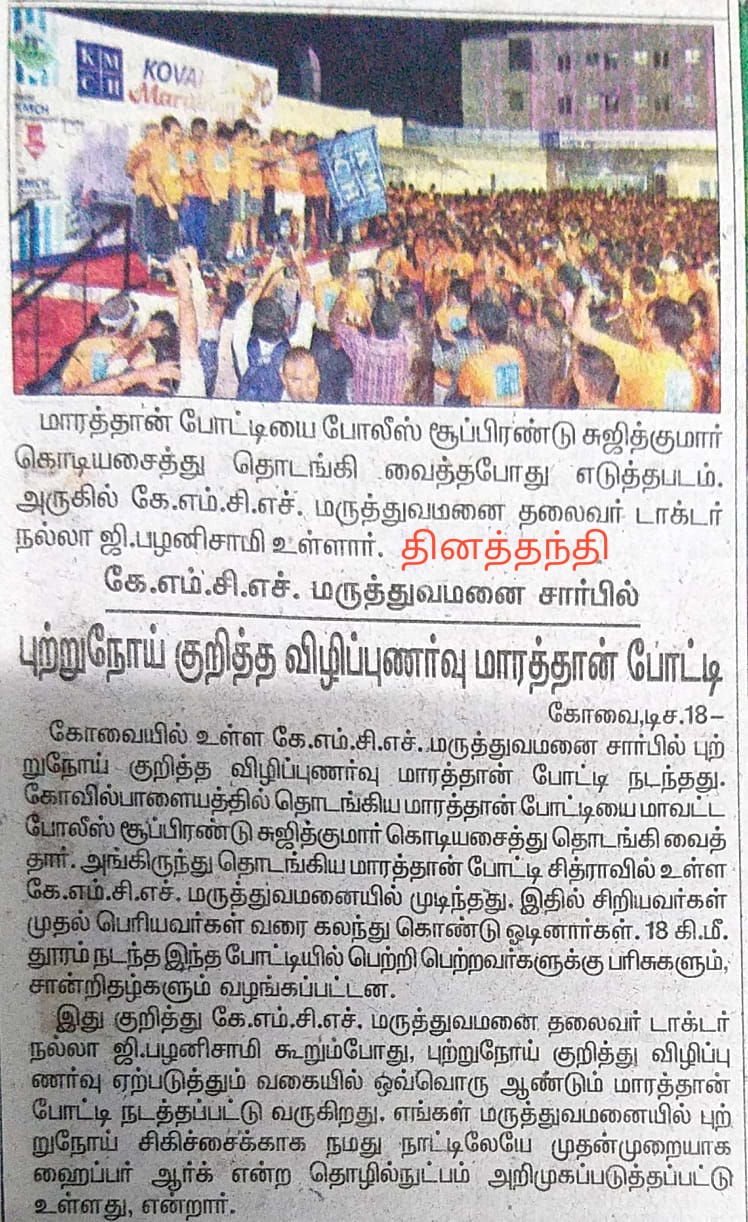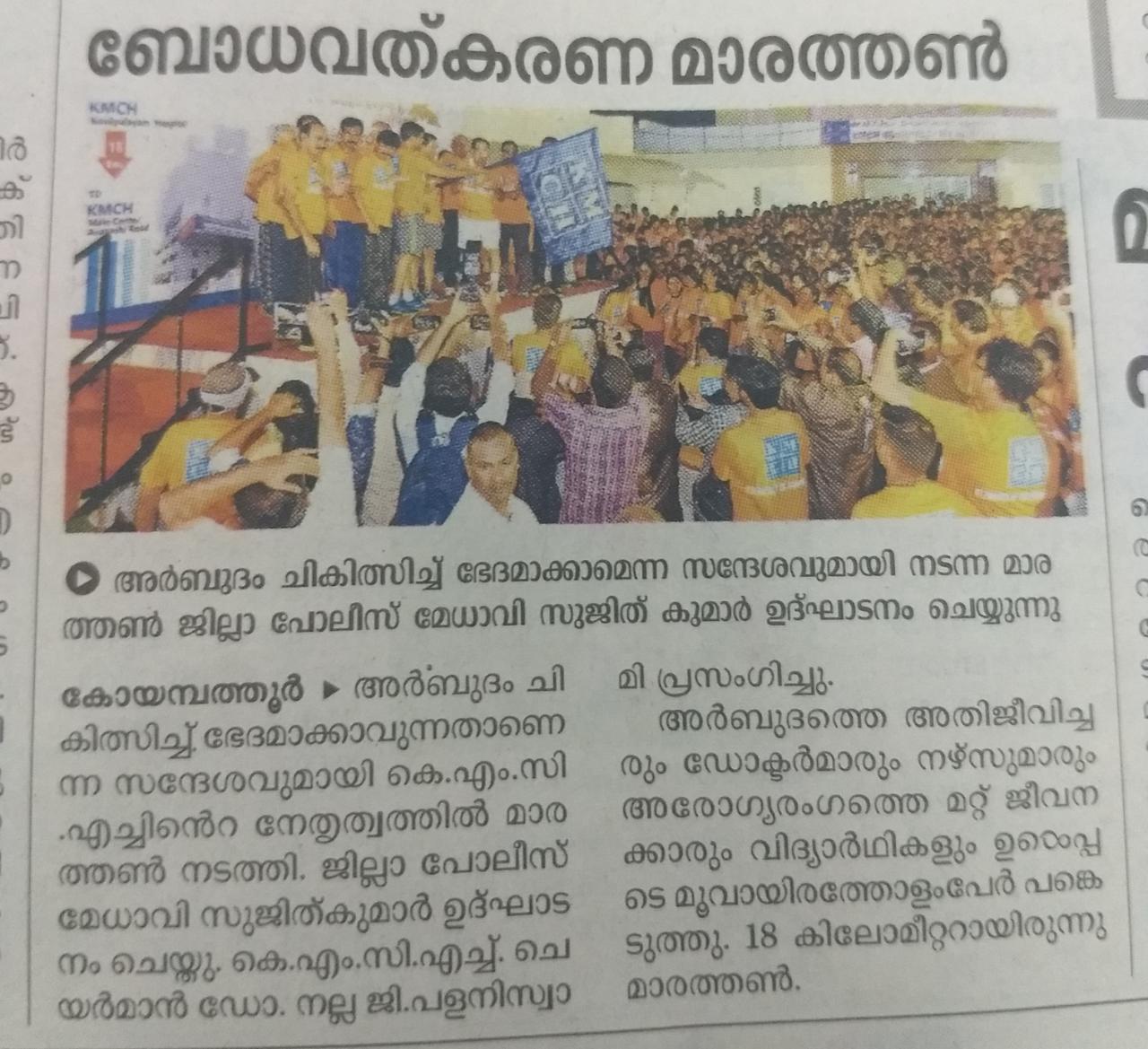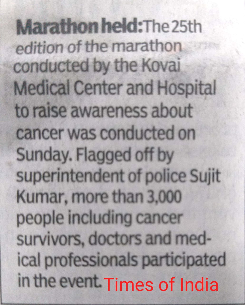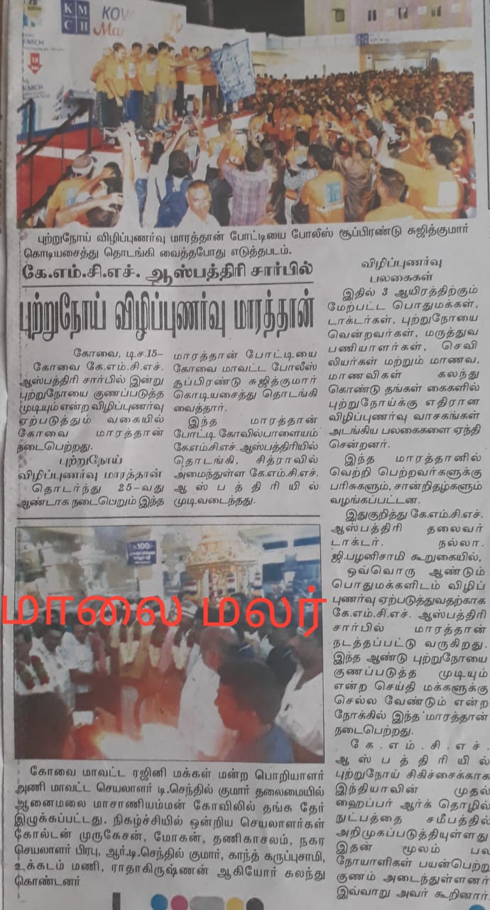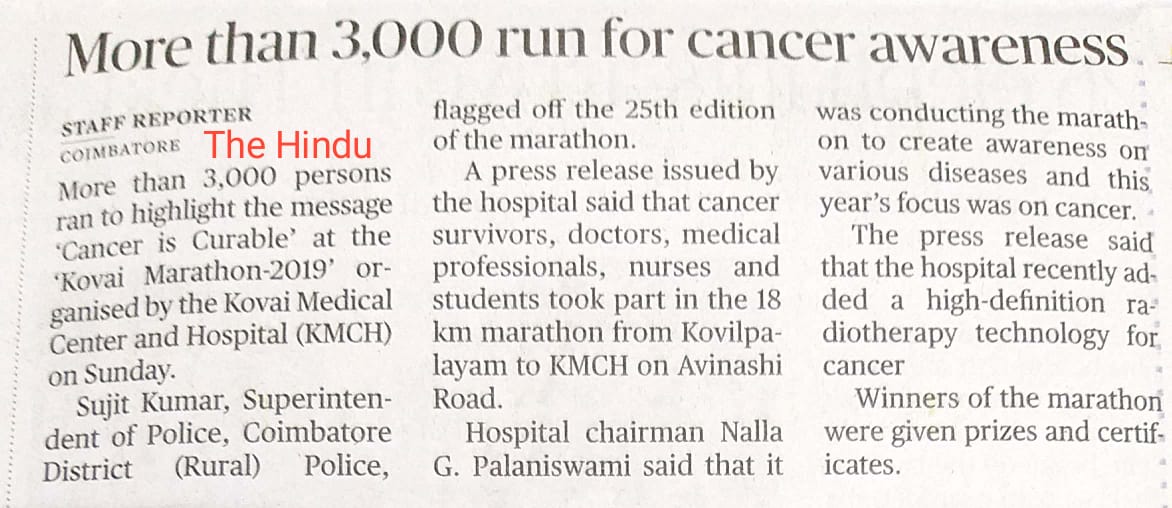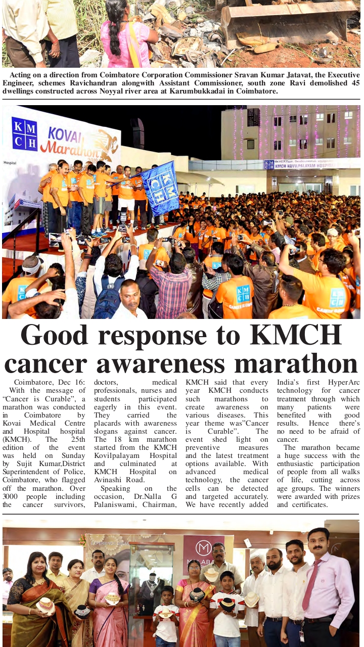Press Clippings of “KMCH Cancer Awareness Marathon” appeared in the following news journals.
