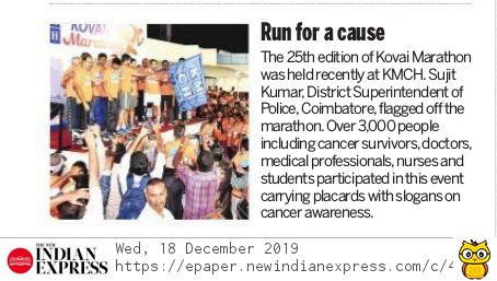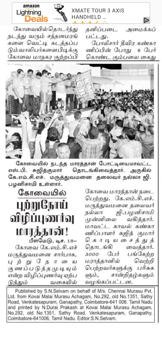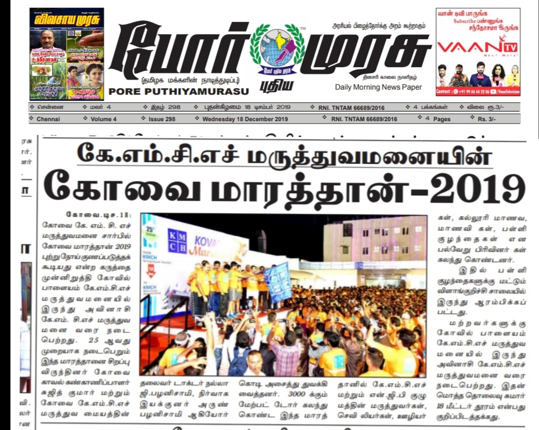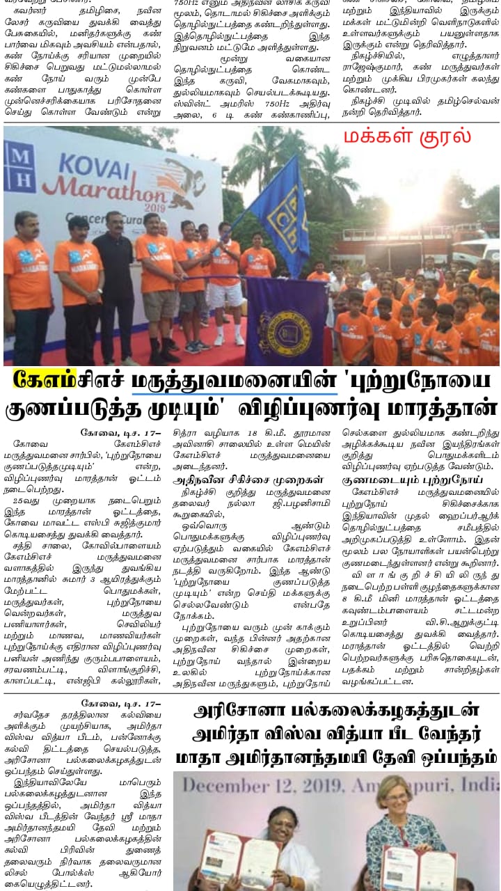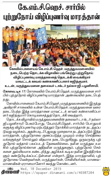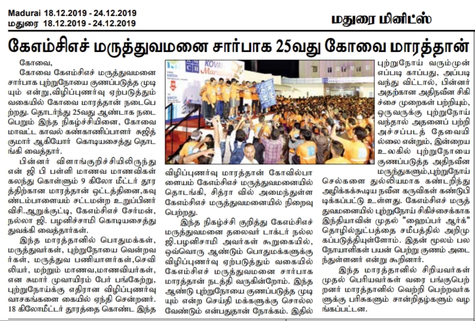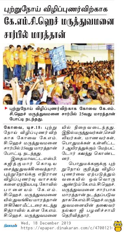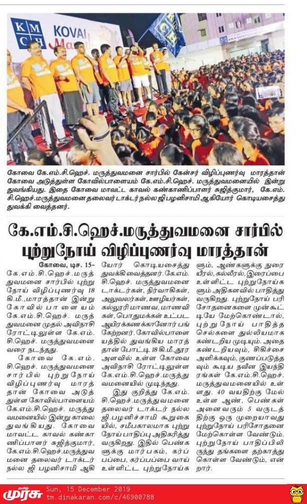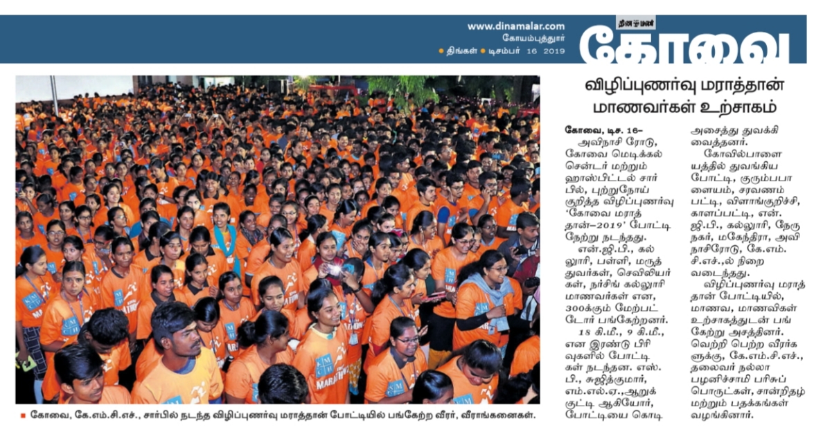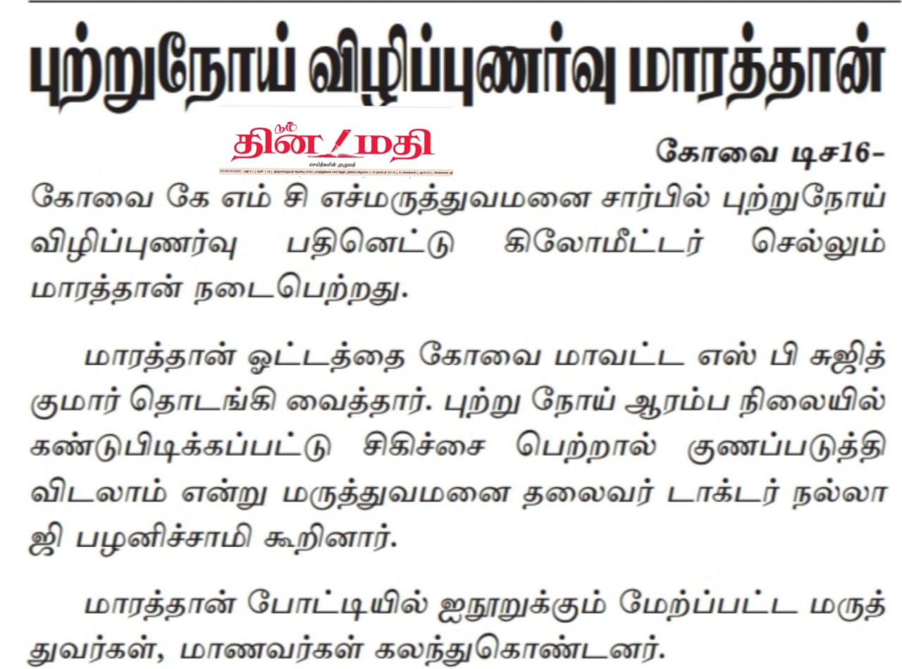 Press Clippings of “KMCH Cancer Awareness Marathon” appeared in the following news journals.