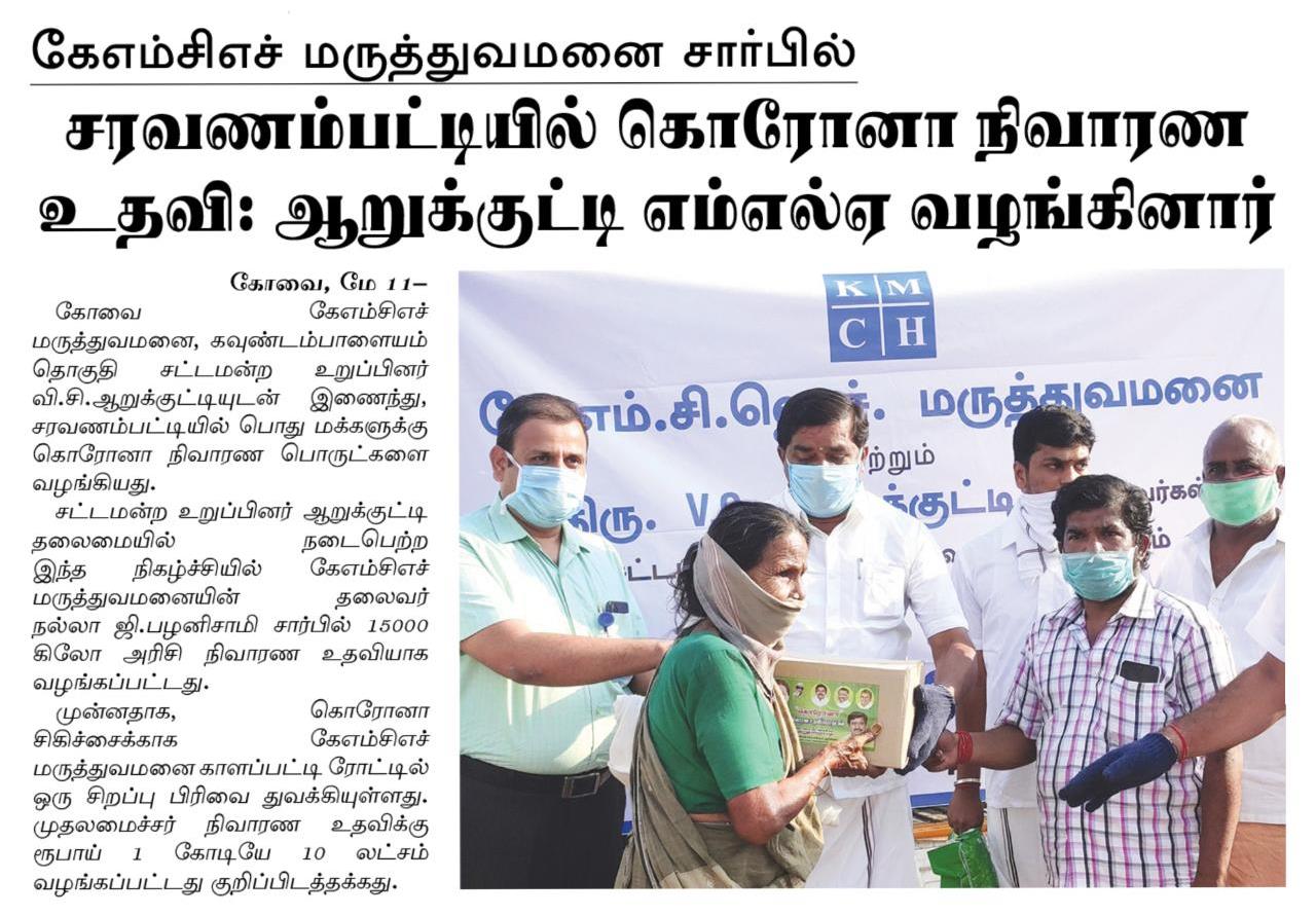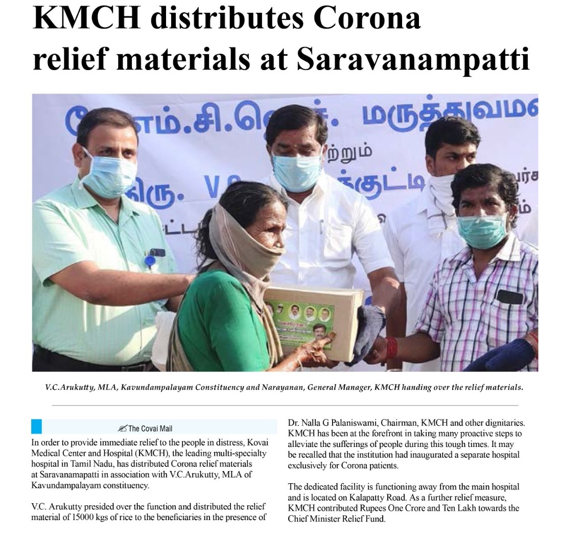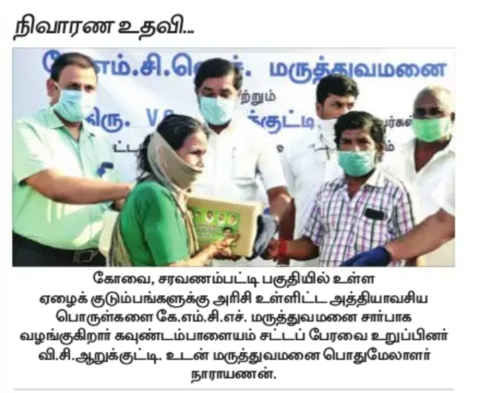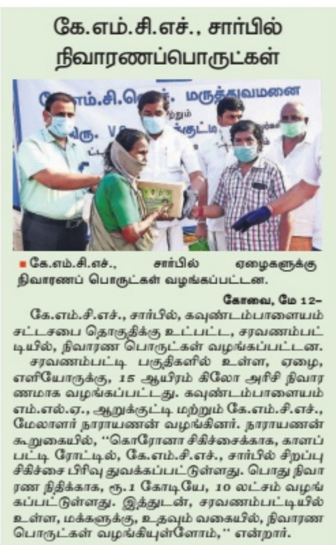 Home » KMCH distributes Corona relief materials at Saravanampatti