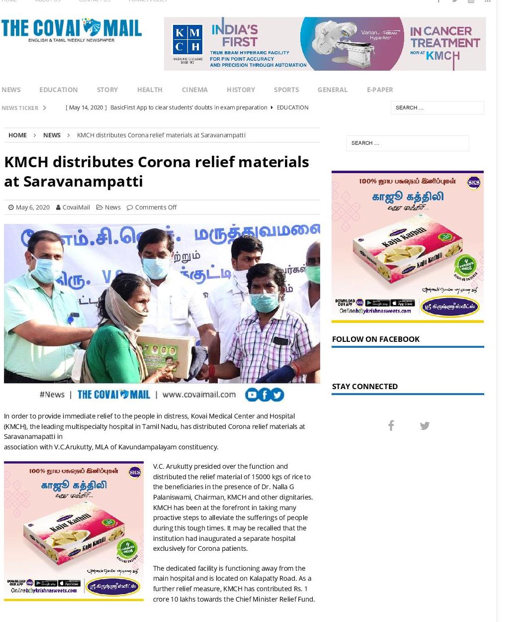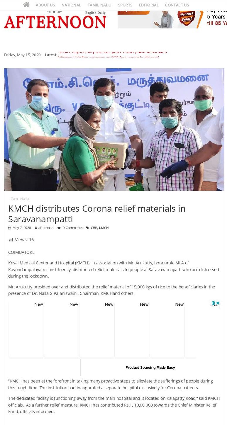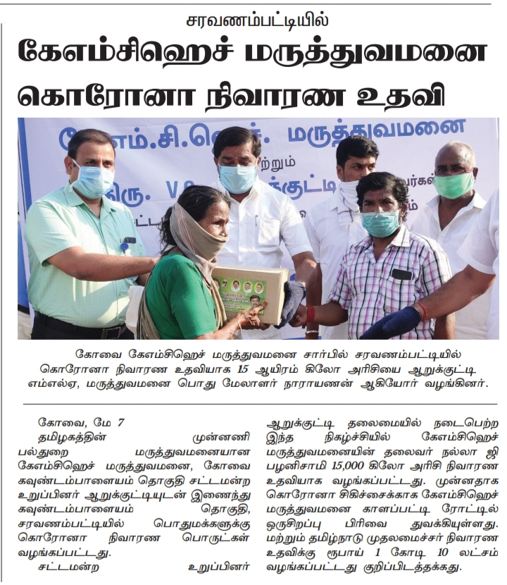 Home » KMCH distributes Corona relief materials at Saravanampatti