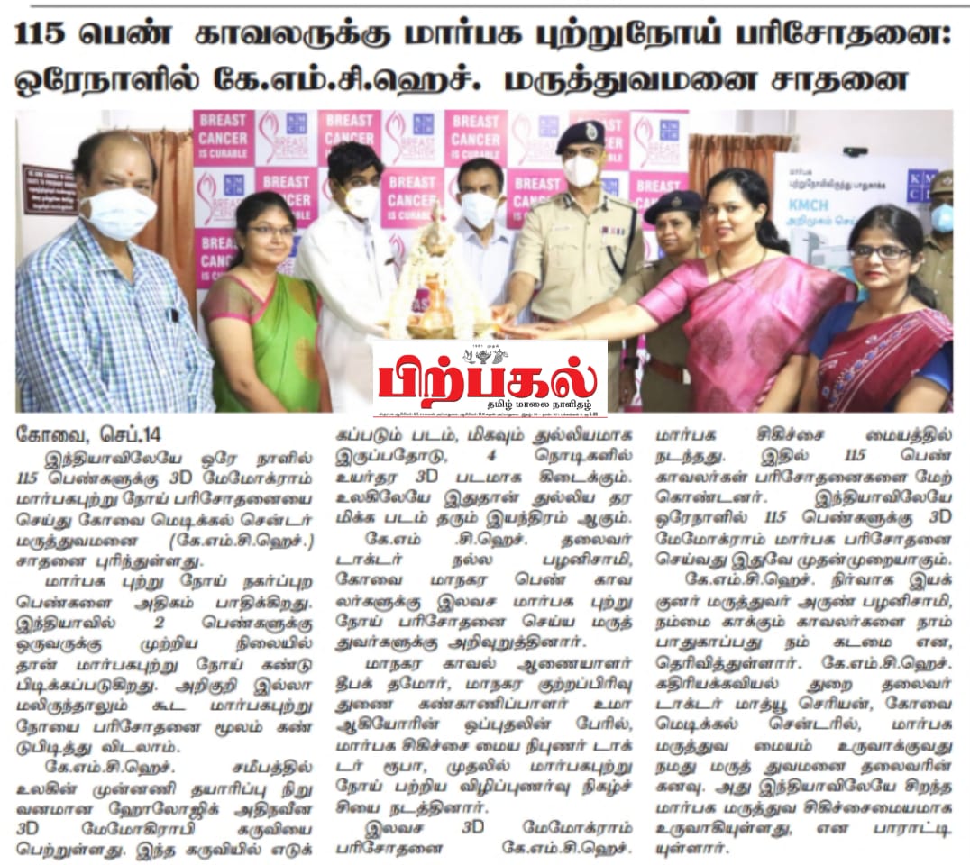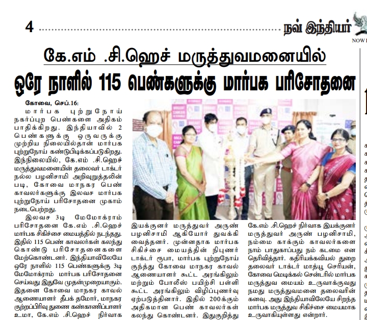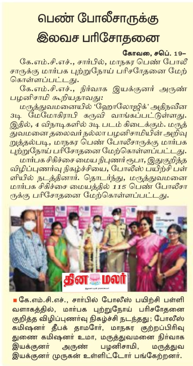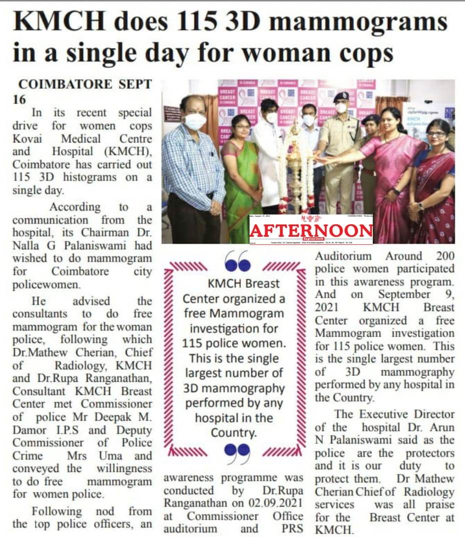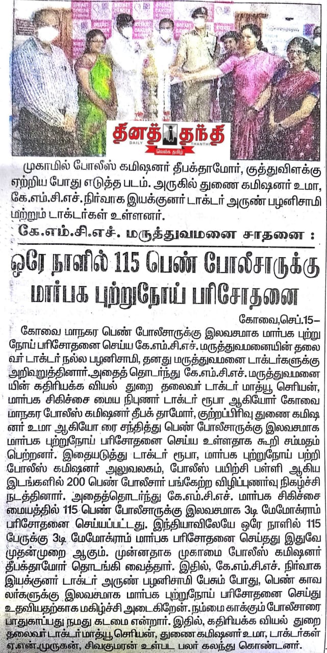 Press Clippings of “KMCH does 115 3D mammograms in a single day for woman cops” appeared in the following news journals.