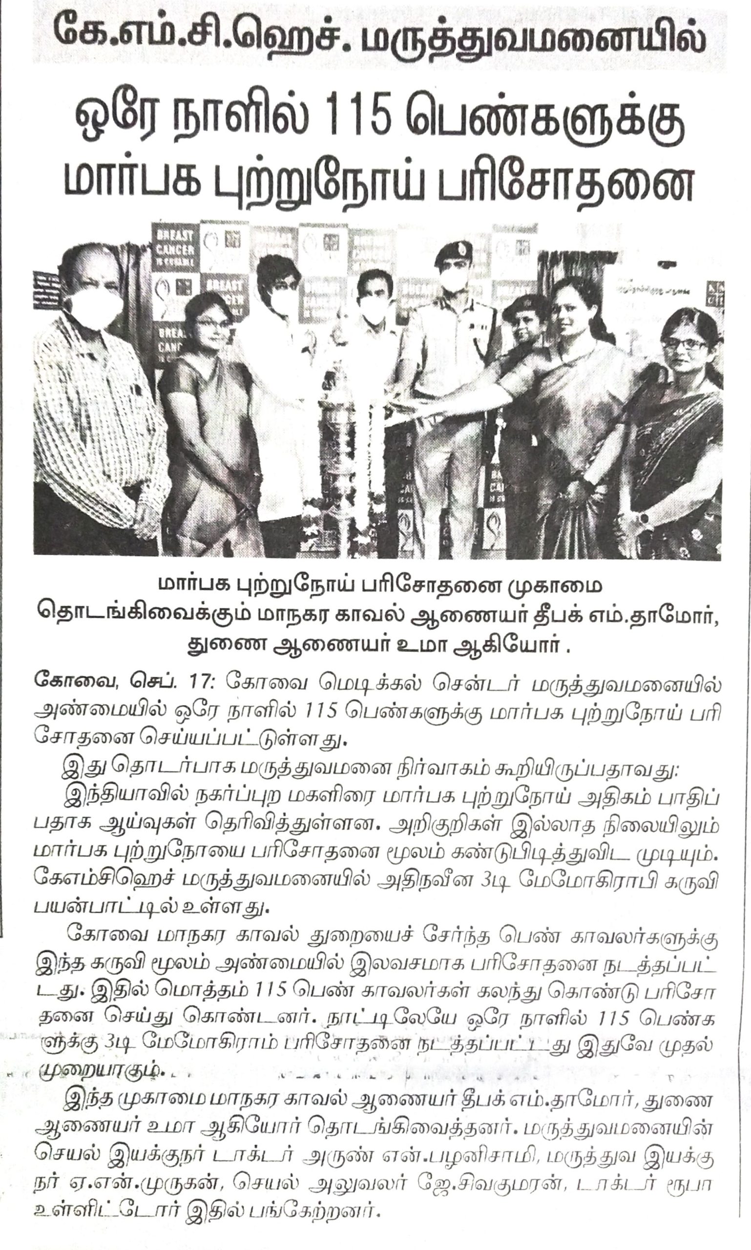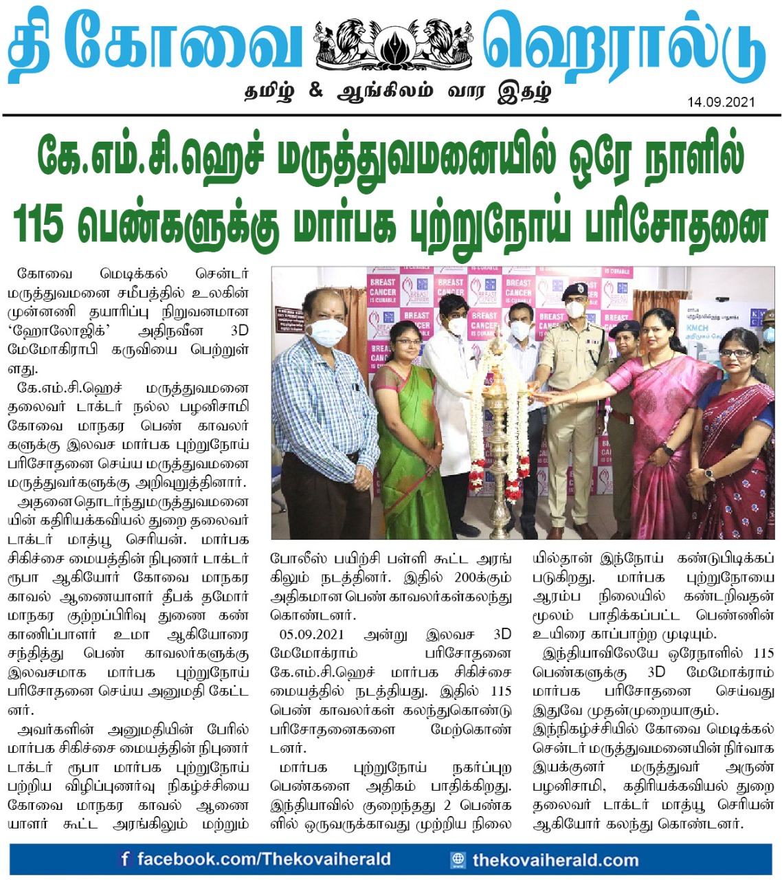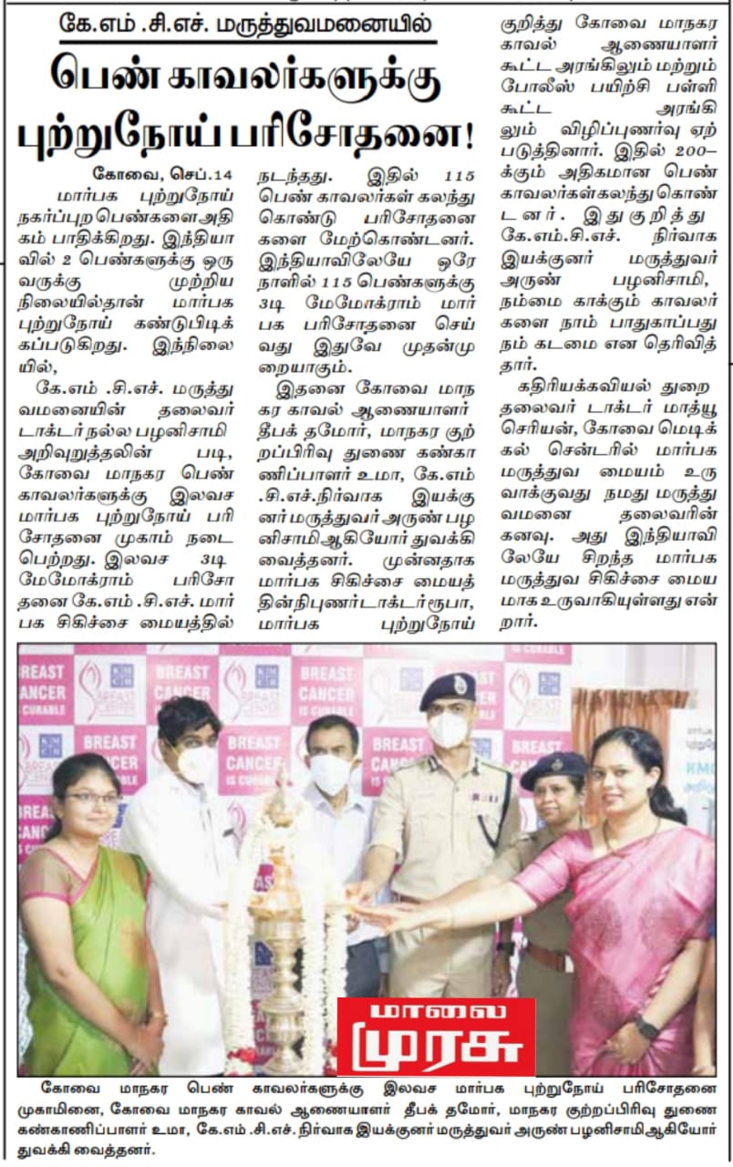 Press Clippings of “KMCH does 115 3D mammograms in a single day for woman cops” appeared in the following news journals.