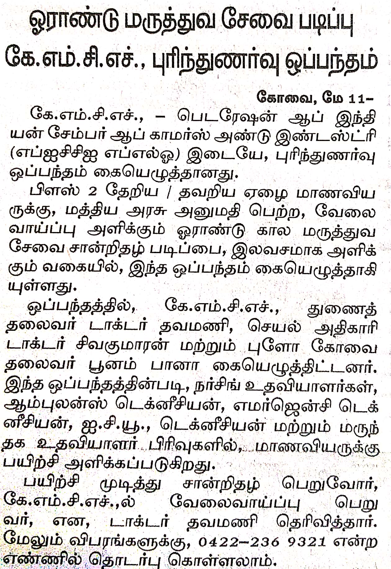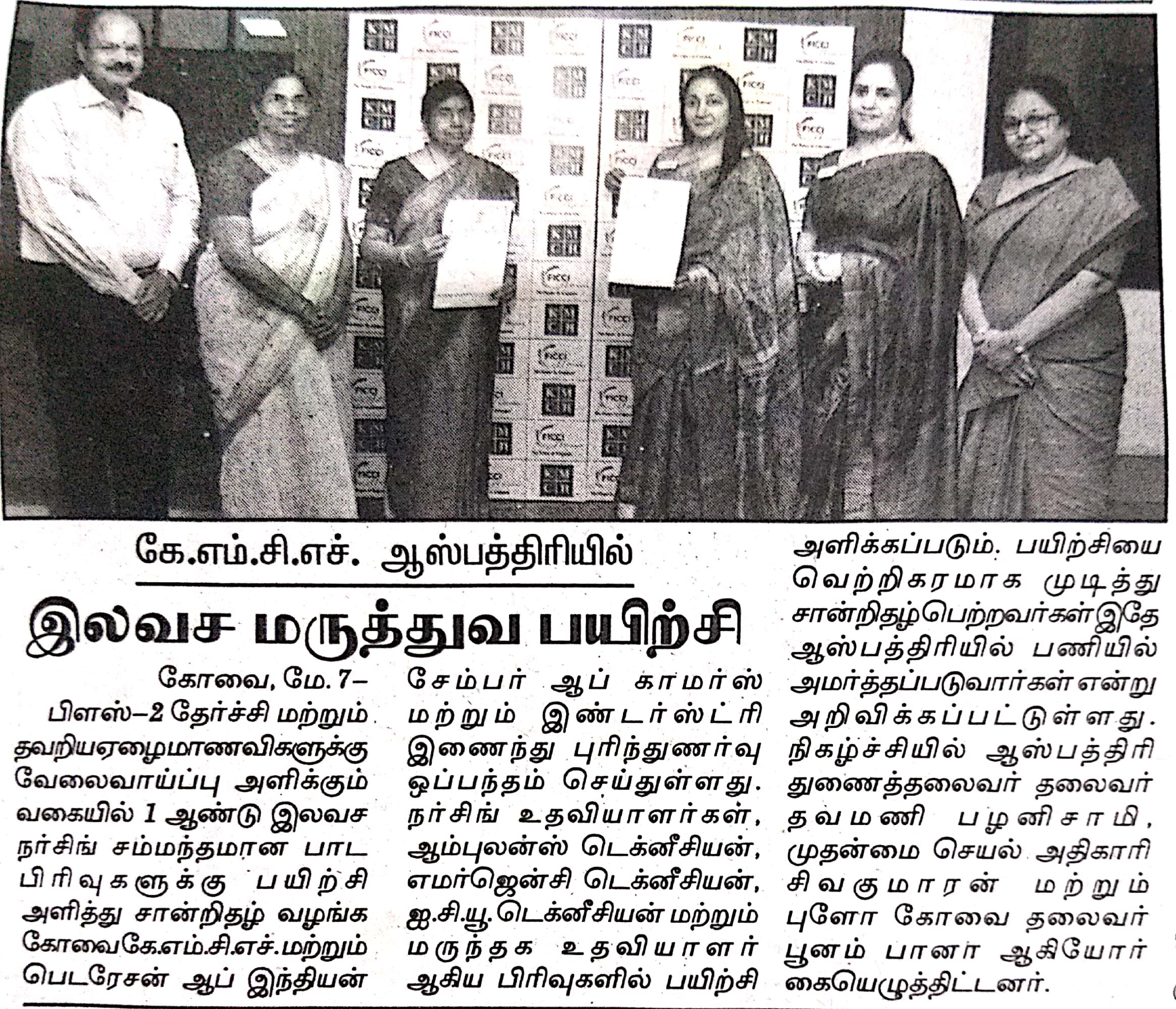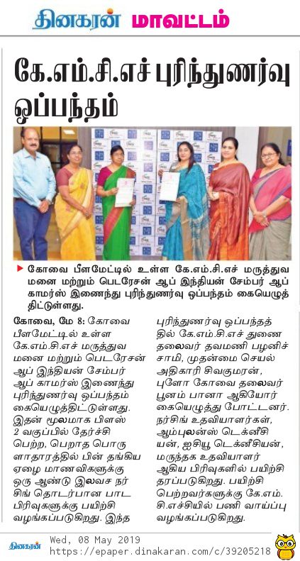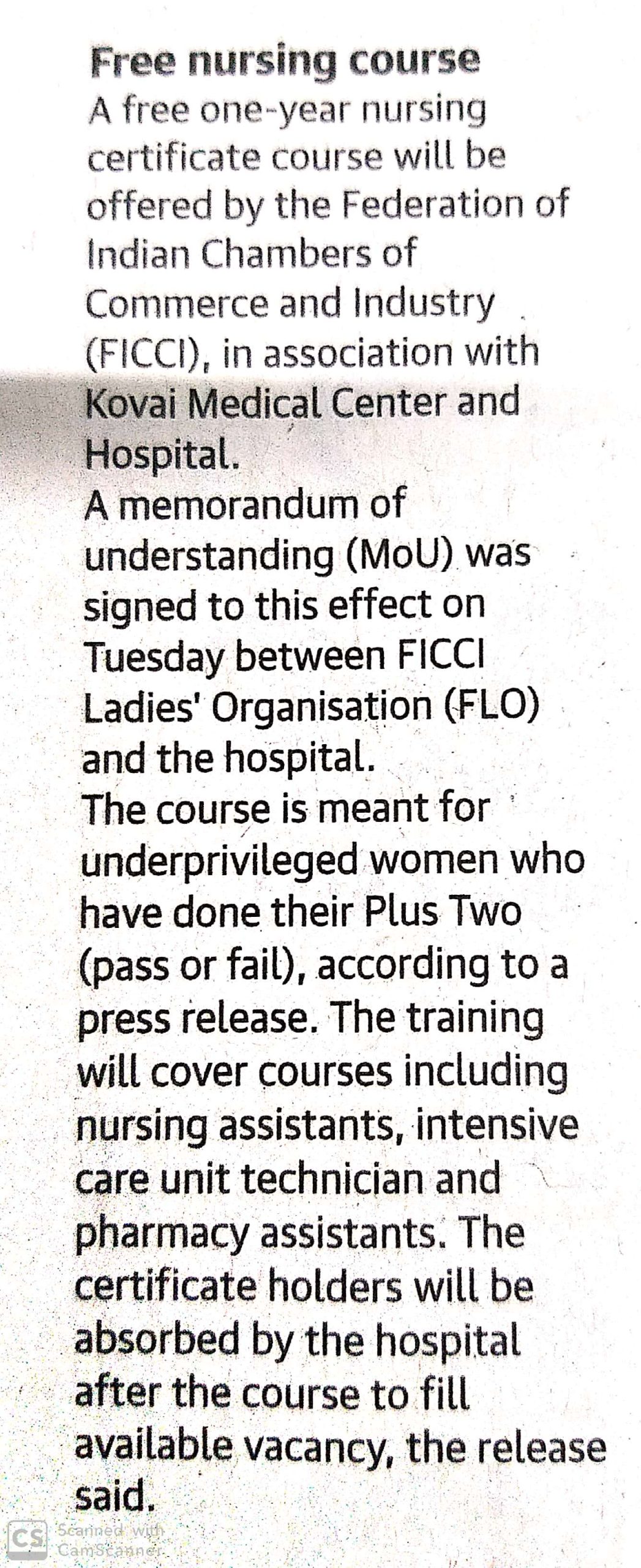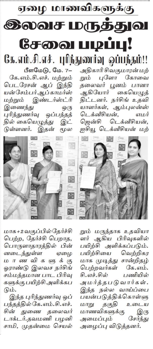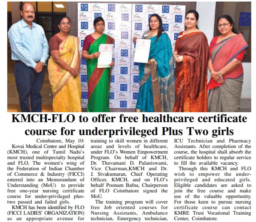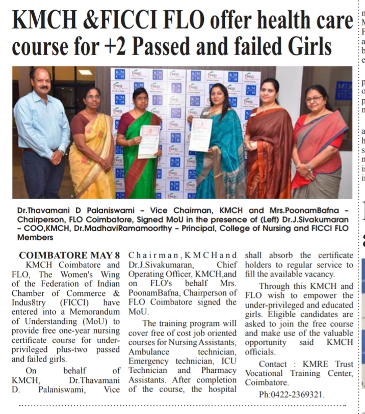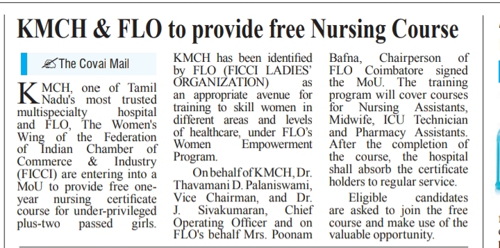 Press Clippings of “KMCH & FLO to provide free Nursing Course” appeared in the following news journals.