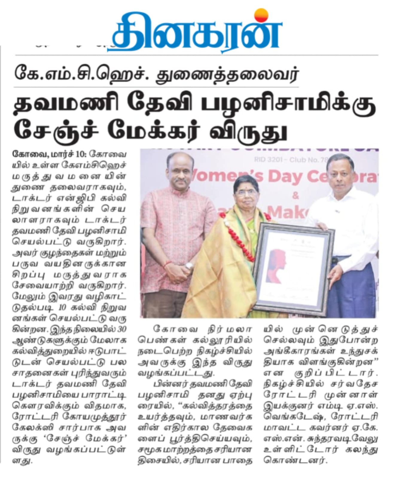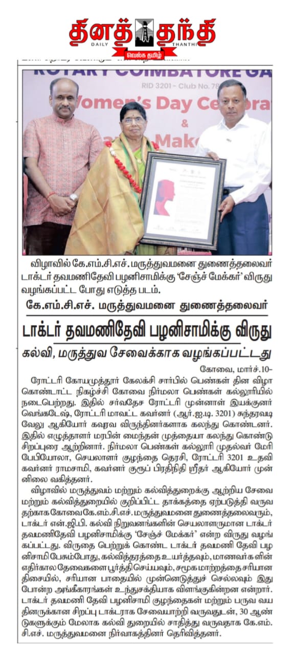 Home » KMCH Vice President Dr. Thavamani D. Palaniswami Awarded with the Change Maker Award