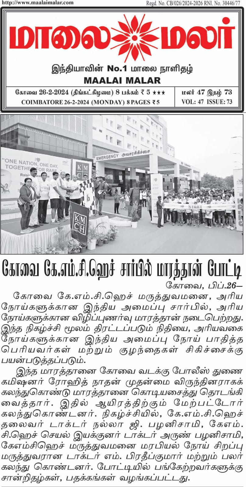 Dr. Nalla G Palaniswami, Chairman and Managing Director, KMCH inaugurated 'A Paediatric Oncology ward'