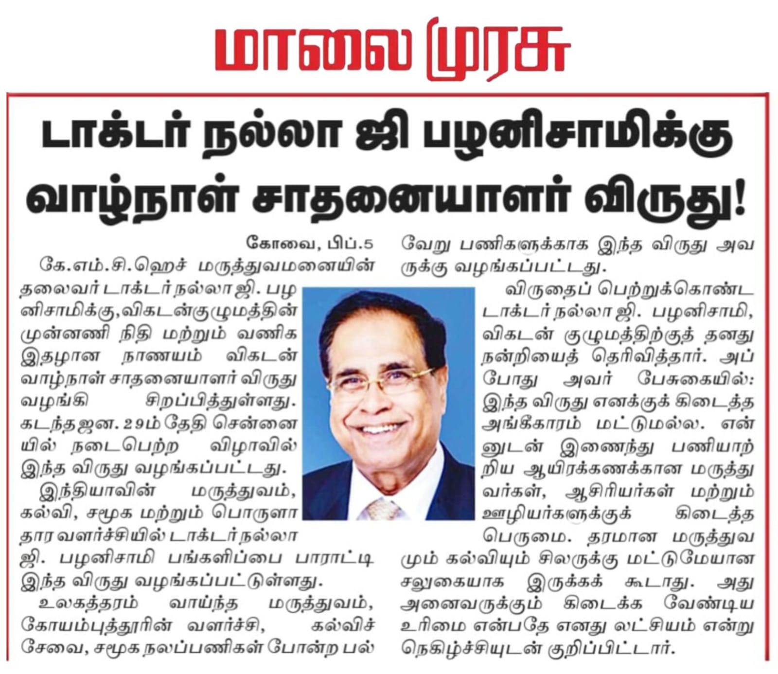 Press Clippings of “Vikatan Life Time Award” appeared in the following news journals.